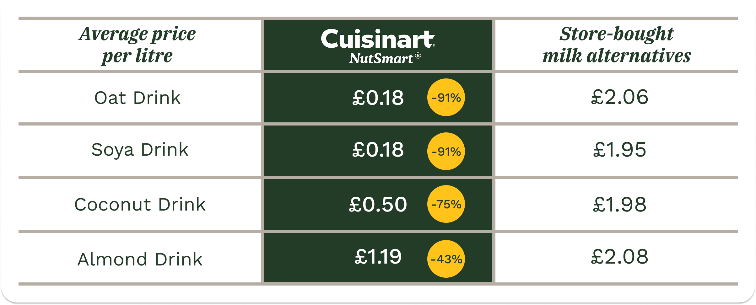 For example, make fresh oat drinks for around 20p per litre vs on avg. £2.00 in store. Up to 90% cheaper!