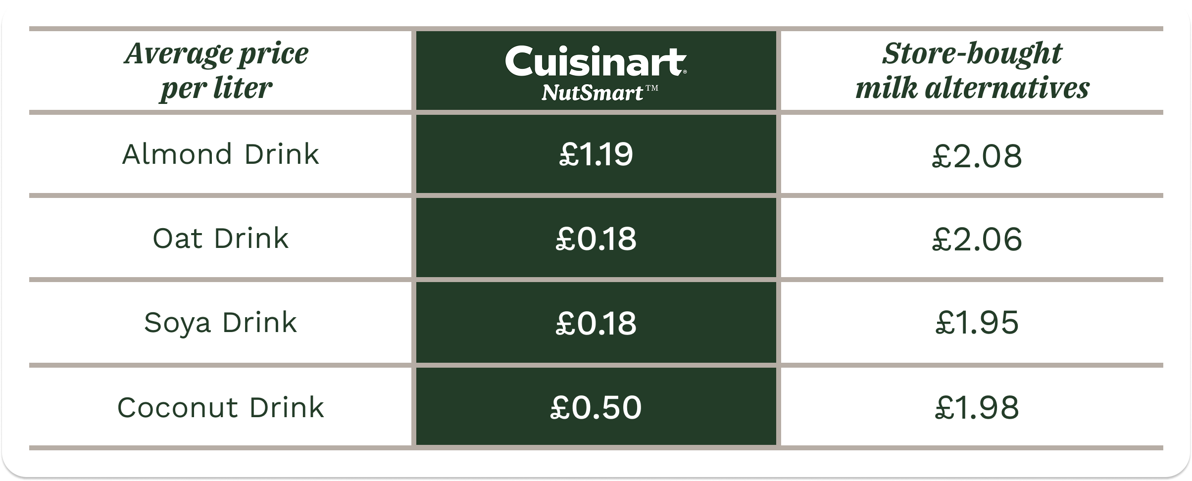 • One litre of store-bought Oat drink can cost around £2*. With NutSmart you can make your own for less than 20p!